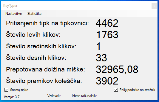 KeyTyper je program, ki šteje kolikokrat ste pritisnili tipke na tipkovnici, levi, desni in sredinski gumb na miški, prepotovano razdaljo kurzorja in število premikov koleščka v enem dnevu. Števila razvrsti v graf in jih pošlje na strežnik, kjer lahko primerjate rezultate z drugimi po svetu. Statistiko najdete tukaj.