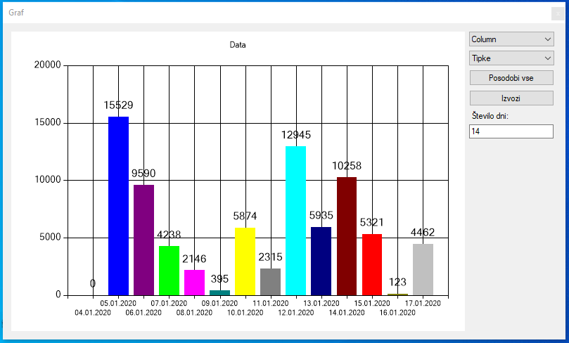 Program NE shranjuje vrstnega reda pritisnjenih tipk. Shranjuje le, kolikokrat je bila tipka pritisnjena!