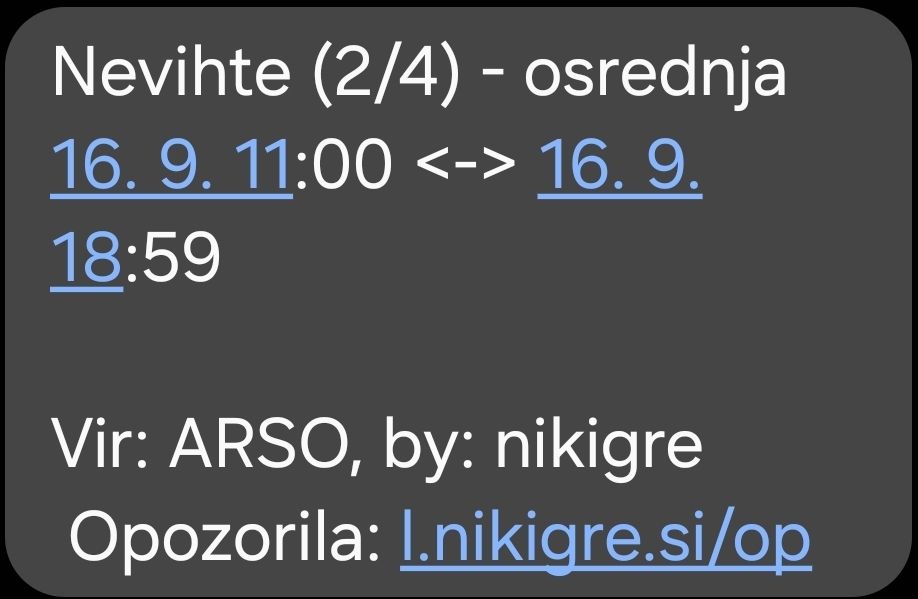 ARSO opozorila je storitev, pri kateri se uporabnik z vpisom telefonske številke in izbiro dogodkov po regijah naroči na obvestila SMS o vremenskih opozorilih, ki jih prejema vsak dan med 10.00 in 20.00 glede na izbrano stopnjo nevarnosti.
