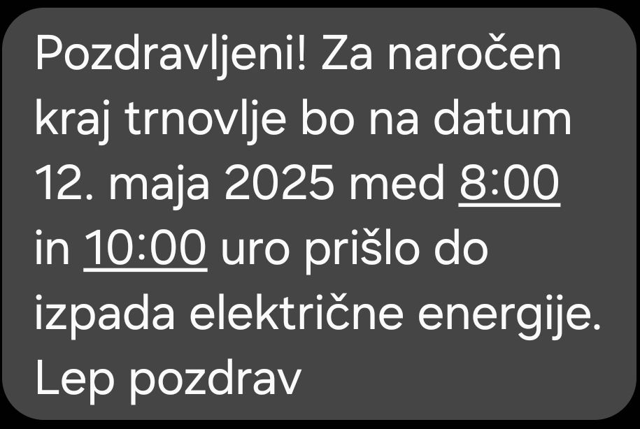 Storitev omogoča naročanje na obvestila SMS o izpadih elektrike v omrežjih Elektro Celje – ob prijavi uporabnik vnese ime, telefonsko številko in izbrani kraj, obvestila pa prejema vsak dan opoldne.