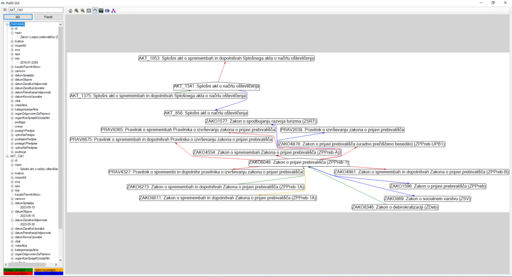 PISRS GUI je program, ki olajša pregledovanje pravnih aktov v PISRS, omogoča izdelovanje kazal aktov, prikaz povezanih predpisov, odpiranje aktov neposredno v brskalniku ter izvoz grafov v SVG in JPG.